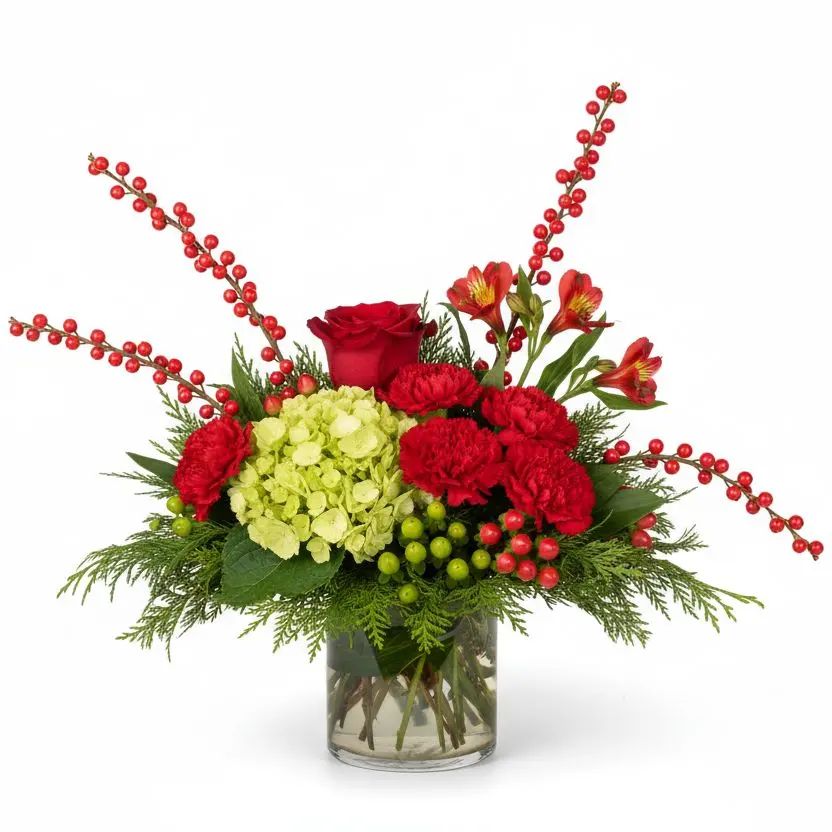 Embrace the festive spirit with our enchanting Winter Berry, a stunning arrangement bursting with vibrant red roses, cheerful berries, and lush evergreens. This delightful bouquet brings warmth and joy to any home or gathering, creating unforgettable moments. Celebrate the season's magic with this truly heartwarming floral masterpiece!